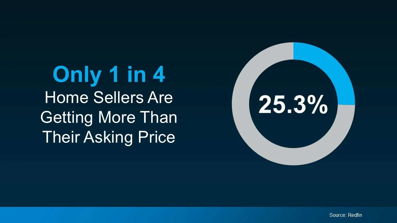 Let's start with the most common sticking point: the asking price. Today, 8 in 10 sellers expect to get their asking price or more. But that confidence doesn’t always line up with reality. According to Redfin, only 1 in 4 (25.3%) sellers are actually getting more than their list price.